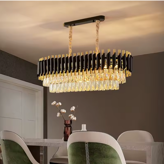 Lámpara de araña Art Déco de cuero y cristal