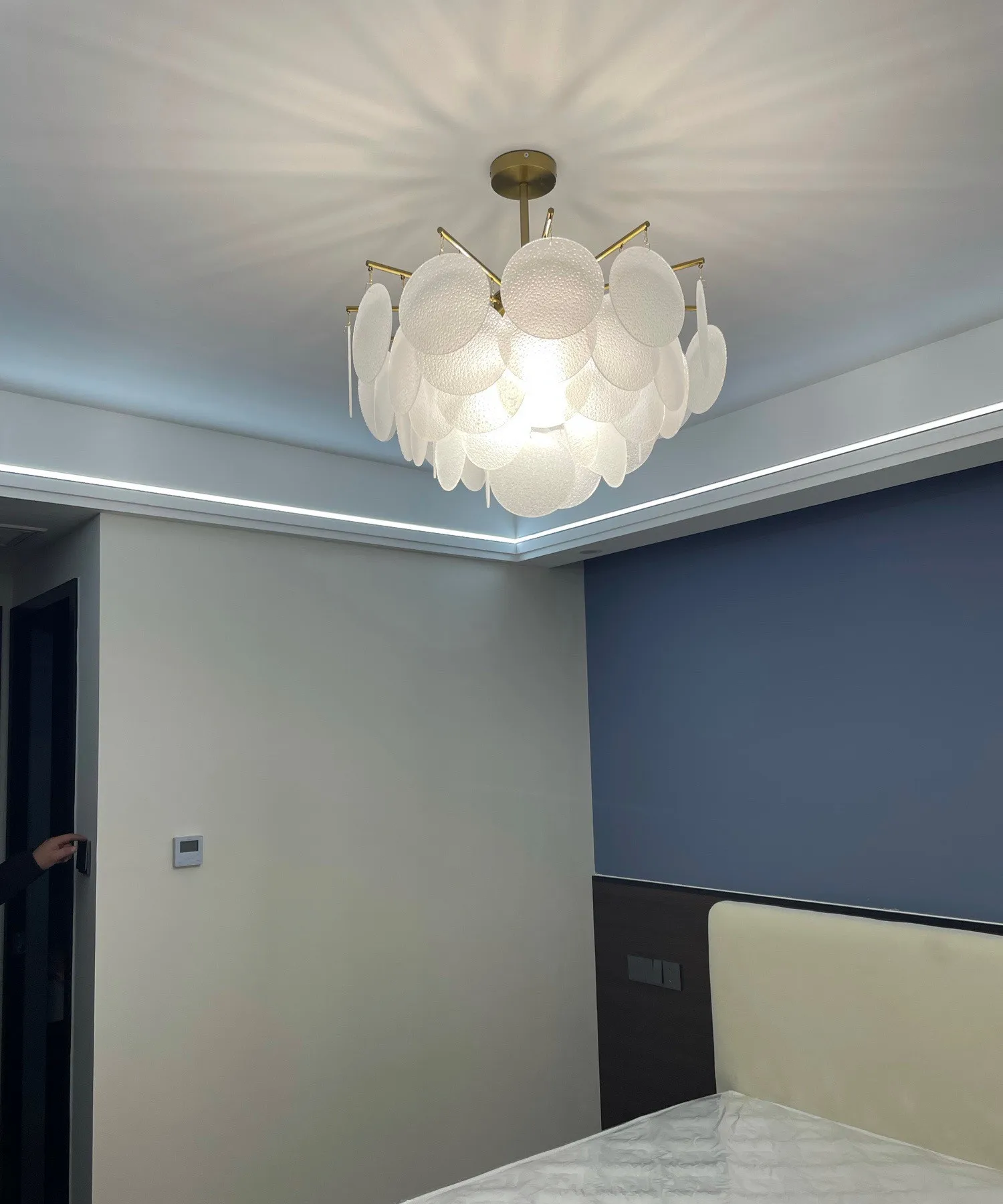 Esta impresionante lámpara de techo de cristal de lujo es perfecta para añadir un toque de lujo a cualquier habitación. Con su diseño moderno y su resistente construcción de acero, sin duda impresionará. La lámpara cuenta con hermosos círculos de cristal y está disponible en varios tamaños para adaptarse a sus necesidades. Si busca añadir un toque de elegancia a su sala de estar, dormitorio o comedor, esta lámpara es una excelente opción.