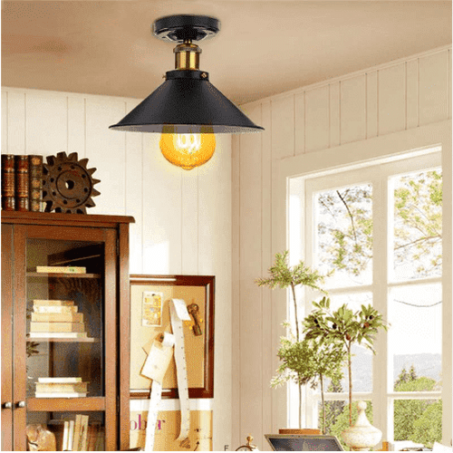 Esta lámpara de techo vintage se inspira tanto en casas rústicas como en diseños más contemporáneos, ofreciendo lo mejor de ambos mundos. Para lograr este estilo en tu sala o comedor, comienza colgando un par de estas elegantes lámparas de techo. Estas lámparas clásicas le dan a tu hogar un toque rústico, mientras que su elegante acabado negro añade un toque moderno.