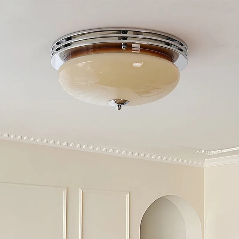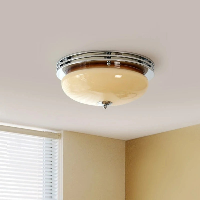 Add a touch of modern French style to your bedroom or hallway with this beautiful ceiling light. Its Bauhaus retro design and cream wind glass shade create a warm and inviting ambiance, perfect for everyday use. The light's stainless steel body and chassis ensure durability, while its easy-to-install surface-mounted design makes it a breeze to set up.
