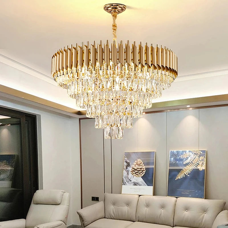 Add a touch of luxury to your home with this stunning crystal chandelier. Its modern design and crystal drops create a beautiful reflection of light, making it a perfect addition to any room. The crystal chandelier is perfect for living rooms, dining rooms, and bedrooms, and its modern style will complement any decor.