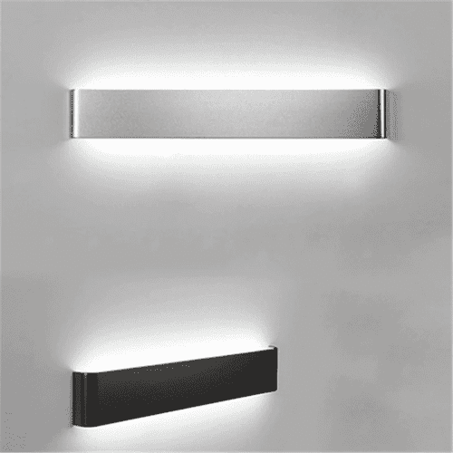 This minimalist wall lamp adds sophistication to any room. Its elegant, minimal design is available in either black or silver to fit your style. Its modern and chic style adds a touch of class to any wall in your home or office.