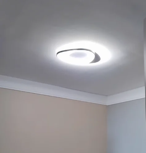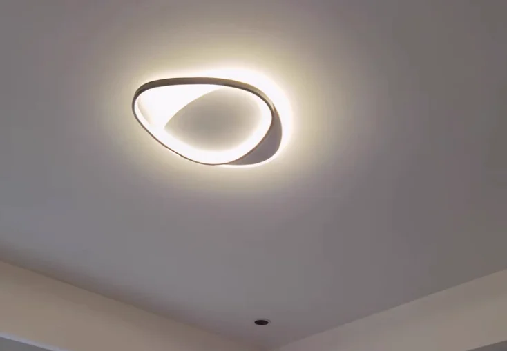 A sleek ultra-thin LED lamp that adds a sleek, modern vibe to any bedroom. Its interlaced lines create a striking visual effect while providing bright, energy-efficient illumination. The lamp offers adjustable brightness and a sleek, frosted finish that complements any decor. Perfect for daily lighting in bedrooms, kitchens, and study areas.