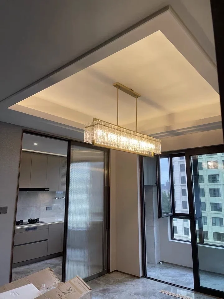 Elevate your home decor with this stunning modern crystal lighting fixture, featuring a modern design that adds a touch of sophistication to any kitchen or dining room. Its polished finish and Long life LED bulbs create an inviting ambiance.
