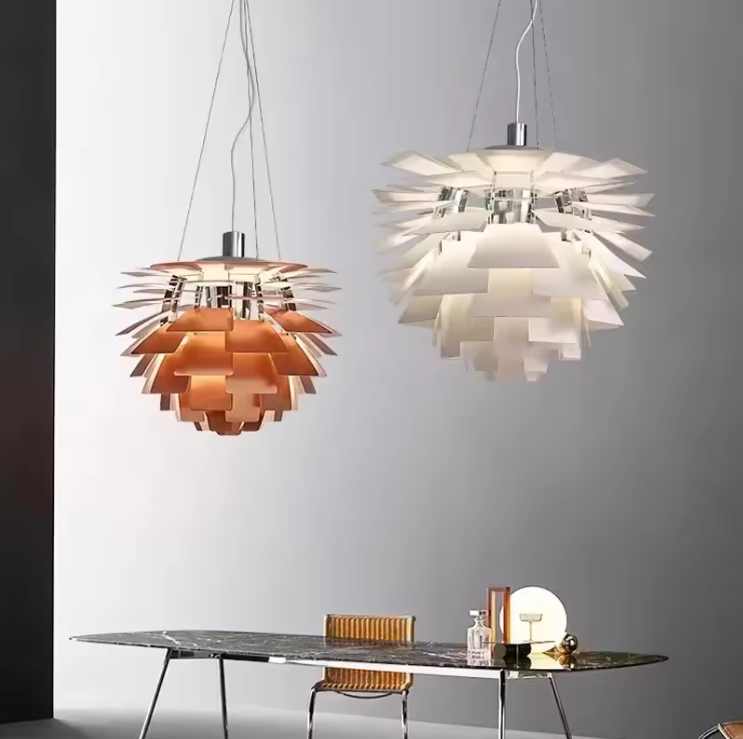 Add a touch of natural elegance to any home with this pine cone pendant light. Its sturdy aluminum‑alloy construction and adjustable 60‑cm hanging cord let you customize the height. Choose from a crisp white, silver or copper color to match your décor. Compatible with standard E27 LED bulbs for bright, energy‑efficient illumination.